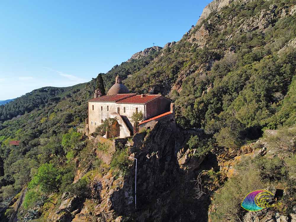 Le Sanctuaire de Monserrato est situé sur une colline isolée, à environ 1 kilomètre de Porto Azzurro. Il a été construit par le gouverneur espagnol Pons y Léon en 1606 pour le culte de la Vierge noire, qui est vénérée en Espagne dans le sanctuaire de Montserrat.