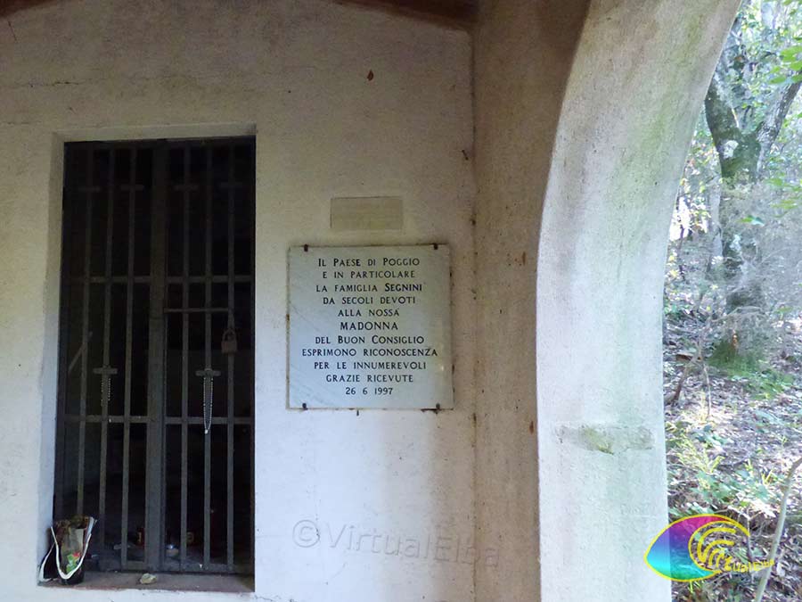 La petite église Oratorio della Madonna del Buon Consiglio est située dans le quartier de Campobagnolo Lavacchio, sur l’ancienne route qui mène de Poggio à Procchio.
