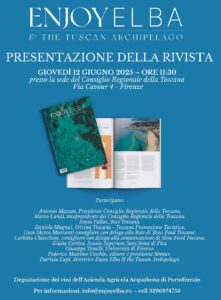 L’édition 2025 sera présentée sur l’île d’Elbe le dimanche 8 juin à 10h00 au Golf Club Acquabona à Portoferraio et le jeudi 12 juin à 11h30 au Conseil régional de Toscane à Florence, Via Cavour 4. À cette occasion, les participants du concours photographique « L’Isola invisibile » qui ont contribué avec leurs photos au choix de la couverture du magazine et des images des pages intérieures seront récompensés.