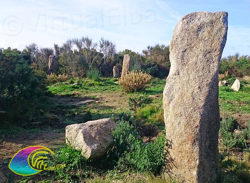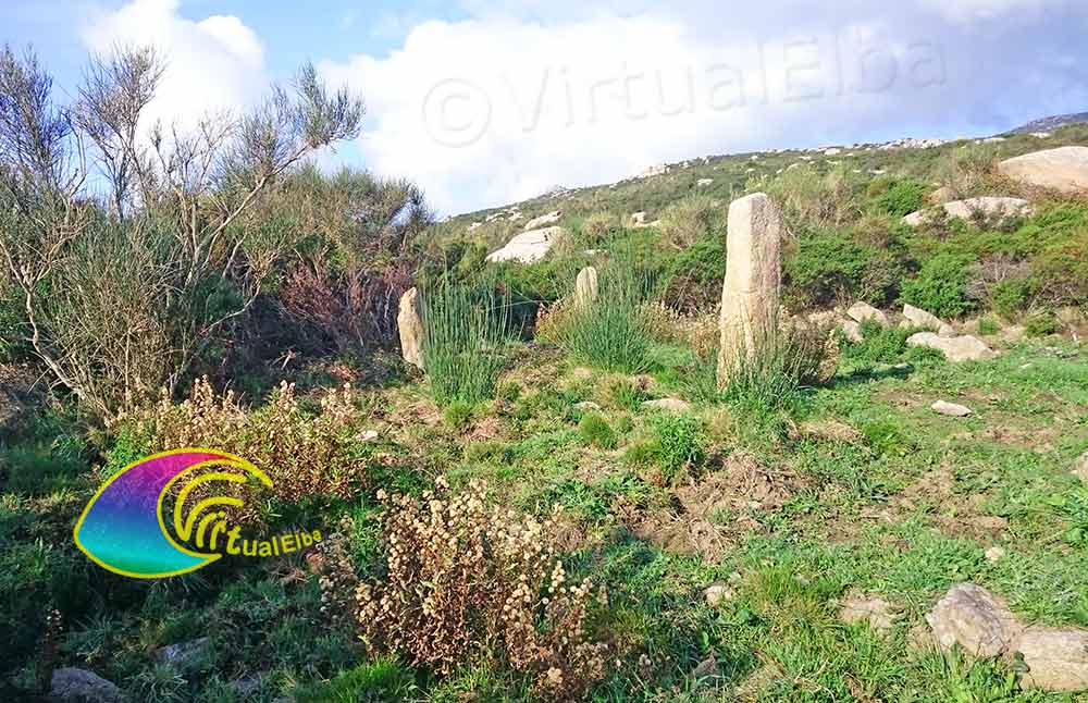 Dès le début de l’ascension vous vous retrouvez devant 4 menhirs qui donnent le nom au lieu-dit appelé Sassi Ritti. Une fois arrivé au chemin plat n. 135, nous tournons à gauche jusqu’au Mulino di Moncione, le plus grand moulin de l’île d’Elbe, en activité jusqu’en 1910. De là, nous descendons jusqu’à le chemin no. 134A où, en faisant un détour à droite, il est possible d’atteindre, dans la localité Lo Spino, un tombeau construit avec des dalles de granit, selon certains, datant de 900 avant JC.