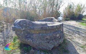 Un peu plus loin, le sentier dans les rues granitiques croise deux autres déviations : le sentier n°1. 134B pour les « Anciennes Carrières de Grottarelle », où sont visibles les différentes phases d’extraction du granit, et le sentier n°134B. 134C pour la « Meule». Une fois de retour sur le chemin principal, nous descendons encore jusqu’à croiser bientôt le chemin n°1. 195 que nous prenons à droite pour un dernier détour jusqu’au chemin n°195. 195C, où se trouve une imposante colonne dégrossie, appartenant à l’Opéra de la Primaziale Pisana, comme le montre l’inscription « OPE » présente dessus.